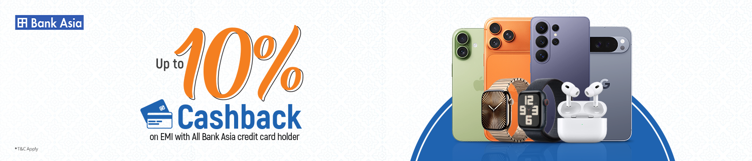 Enjoy exciting cashback and extended EMI benefits on your purchases from Apple Gadgets using any Bank Asia Credit Card.