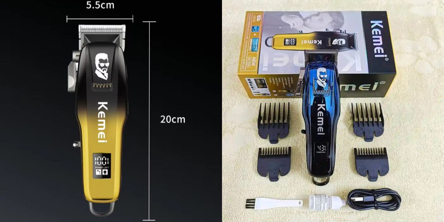Kemei KM 709A feels like a tiny precision engine built for people who love a clean sharp look without the salon trip. Its metal body houses a 6500 rpm motor and a 2000 mAh battery that keeps you grooming for up to three full hours. The T shaped blade glides with near surgical accuracy while the LED display keeps you in control. With four clip sizes and a Type C fast charge system, this trimmer turns everyday grooming into a satisfying ritual.