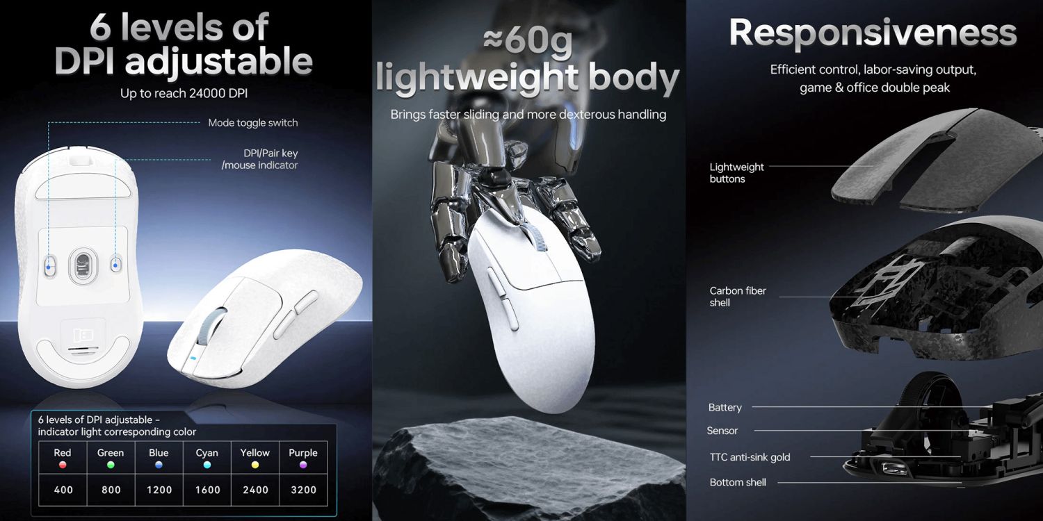 Ajazz AJ199 Max Tri-Mode Carbon Fiber Wireless Gaming Mouse