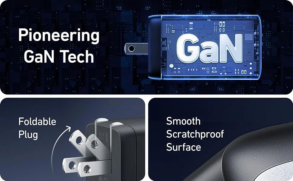 - Future-forward design replaces outdated silicon with GaN for cleaner, faster charging