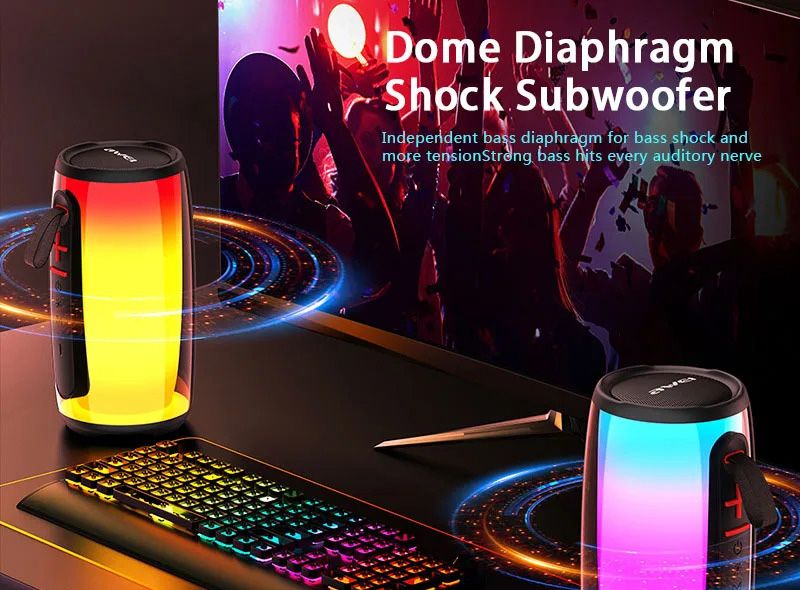 Introducing the Awei Y528 Colorful Light Wireless Speaker, where vibrant sound meets dazzling visuals! Boasting Bluetooth v5.3, this 10W dome diaphragm powerhouse rocks the party for 4-6 hours on a single charge. TWS connectivity lets you wirelessly pair two speakers for an immersive 2.0 stereo for bass shocking audio. With 360 degree high resolution LEDs & 14 ambient light colors, it sets the vibe anywhere - on the beach or indoors. Its sleek dimensions and user-friendly Type-C charging make it the ultimate portable companion. Whether you’re chilling at home or on the go, elevate your audio game and light up your space with the Awei Y528 - it’s a total game changer!