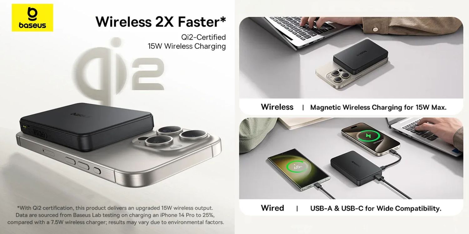 Baseus Airpow II Qi2 22.5W Magnetic Power Bank - 10000mAh