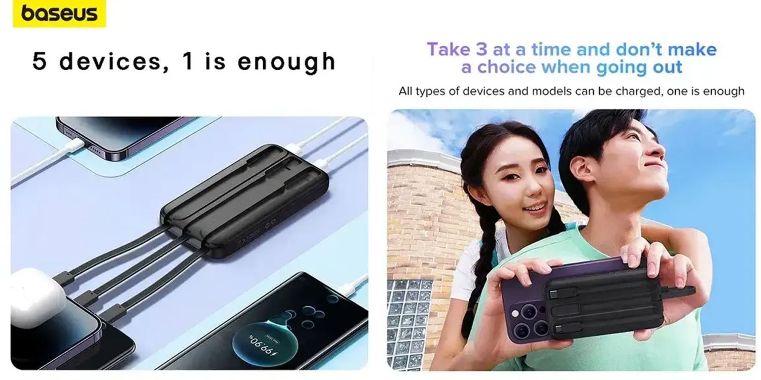 Baseus Comet Series Triple-Cable Digital Display Fast Charge Power Bank - 22.5W
