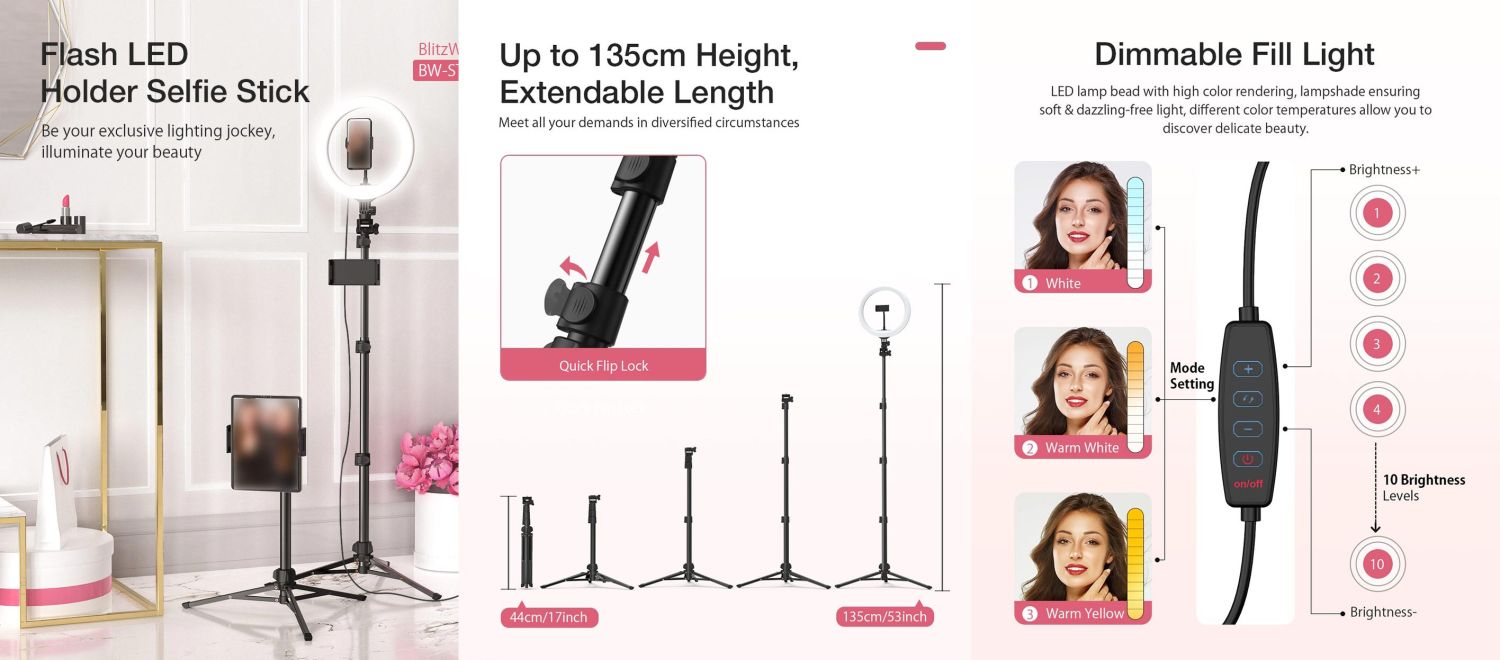 BlitzWolf BW-STB2 Flash LED Phone Tripod Features