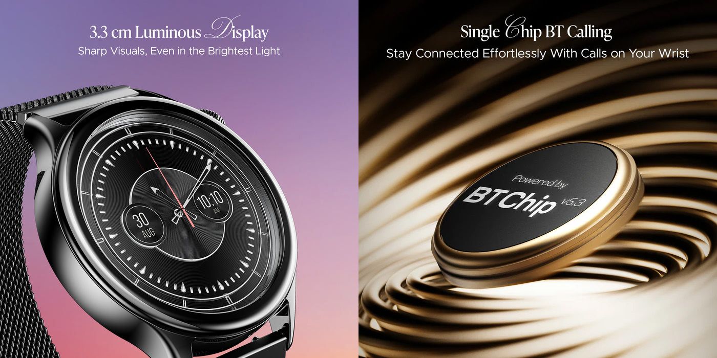 boAt Enigma Daze redefines what it means to stay connected and protected. Built for those who refuse to choose between style and fitness, this sleek companion combines a stunning 1.3" luminous TFT display with life-saving SOS location tracking that sends your GPS coordinates to emergency contacts instantly. Available in gorgeous Metallic Gold, Cherry Blossom, Metallic Black, and Metallic Silver finishes, it delivers premium metal design durability wrapped in IP67 dust and water resistance. Whether you're conquering workouts, navigating busy streets, or attending formal events, this smartwatch keeps you safe, stylish, and always in control.