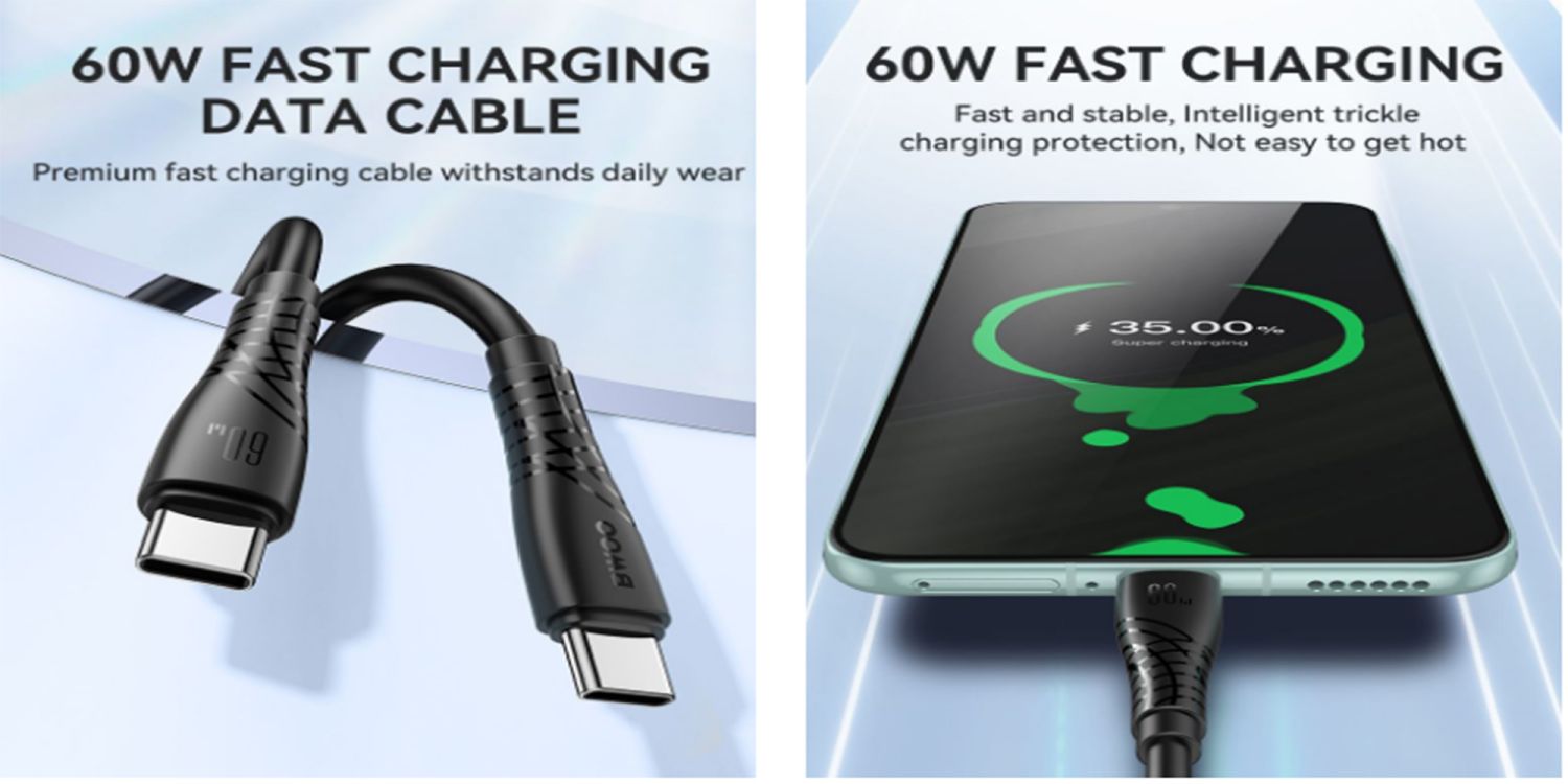 BWOO BO-X318C-C Type-C Cable - 60W Key Highlights