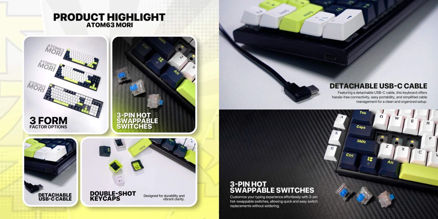 - Hot swappable switches let users change feel effortlessly anytime