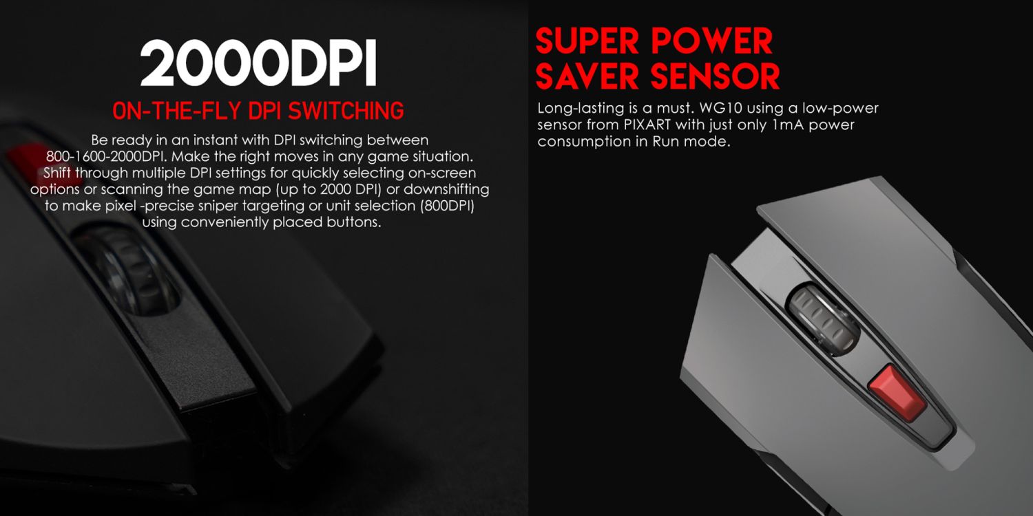 | DPI | Up to 2000 DPI | On-The-Fly DPI adjustment |