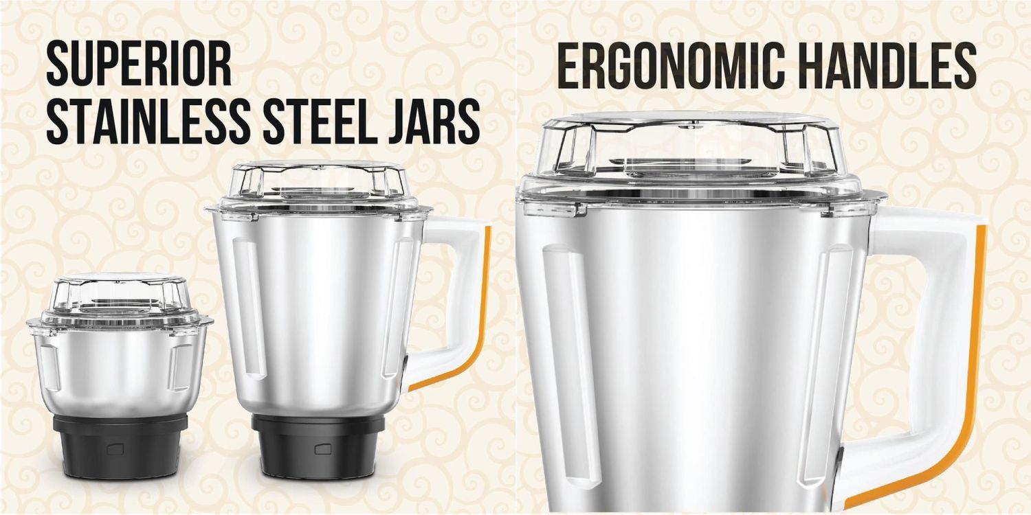 | Number of Jars | 3 Jars: 1x Blending Jar with Filter, 1x Stainless Steel Jar, 1x Chutney Jar |