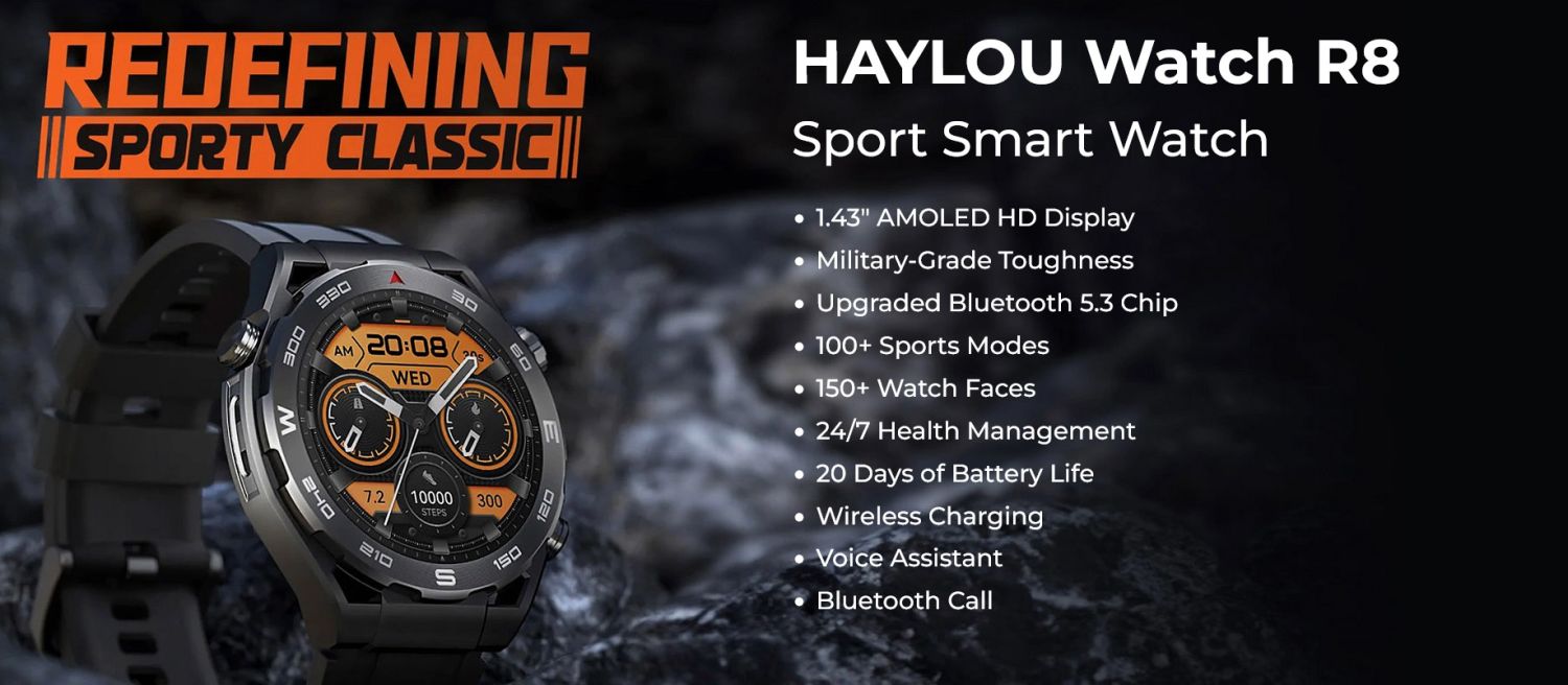 Become the next athlete and don’t stop losing track of your health data with Haylou R8 BT calling smart watch. With R8’s anti-sediment design you get a fashionable and durable build at the same time. Moreover the watch is ready to survive the complex environments with remarkable resistance to heat for up to 55°C and cold down to -40°C. Besides tough build quality, you also get smooth operation while using apps with a high refresh rate. You also get to remain trendy everyday with multiple built-in watch faces. Apart from remaining trendy, the Haylou R8 is ready to take on adventures on indoor and outdoor activities with diverse sports modes. In addition there are dedicated health sensors to keep you informed about health insights. All that while providing multiple days of battery life.