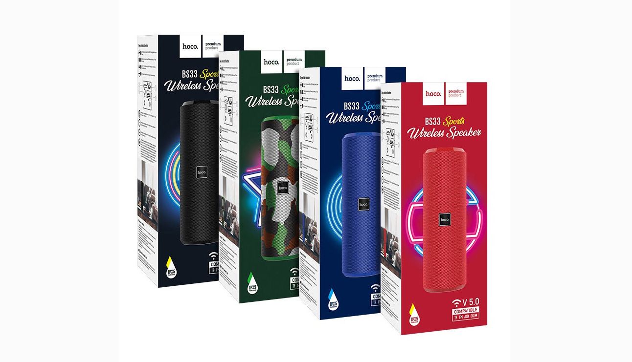 The Hoco BS33 Sports Wireless Speaker is the perfect way to enjoy high-quality music wherever you go. Its powerful 52mm dual speakers deliver clear and rich sound that will make your favorite songs come alive. Through Bluetooth V5.0, you can easily connect it to your phone, tablet, or laptop without any hassle. This speaker also offers more than just Bluetooth – it includes FM radio, TF card support, USB drive, AUX input, and even TWS mode for pairing two speakers together! Its long-lasting battery lets you enjoy music for over 5 hours, making it an ideal choice for all your listening needs.