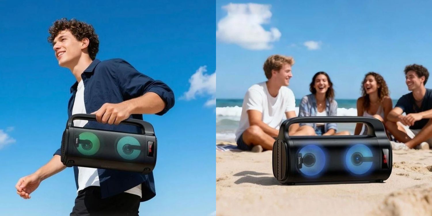 Light up your music and feel every beat with the Hoco DS75 Bluetooth Speaker. Designed to impress at first look and first sound, this speaker brings colorful RGB lighting that dances with your music. Dual 76.2mm high power speakers deliver rich HiFi sound that feels clear, deep and immersive. Bluetooth 5 ensures a smooth and stable connection for easy listening. With multiple interfaces and simple control buttons, the Hoco DS75 makes every moment more enjoyable, whether at home or outdoors.