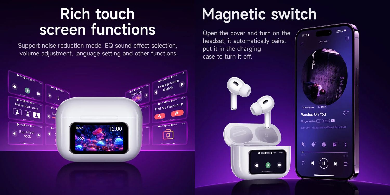 Hoco EW72 ANC TWS Earbuds with Display Features