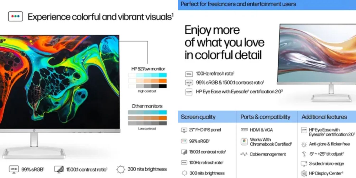 Impressive with 100Hz high refresh rate; HP’s Series 5 527sw 27" professional monitor improves visual flow across creative timelines. Animations, panning, and previews feel more natural, helping creators judge motion and transitions with greater confidence.