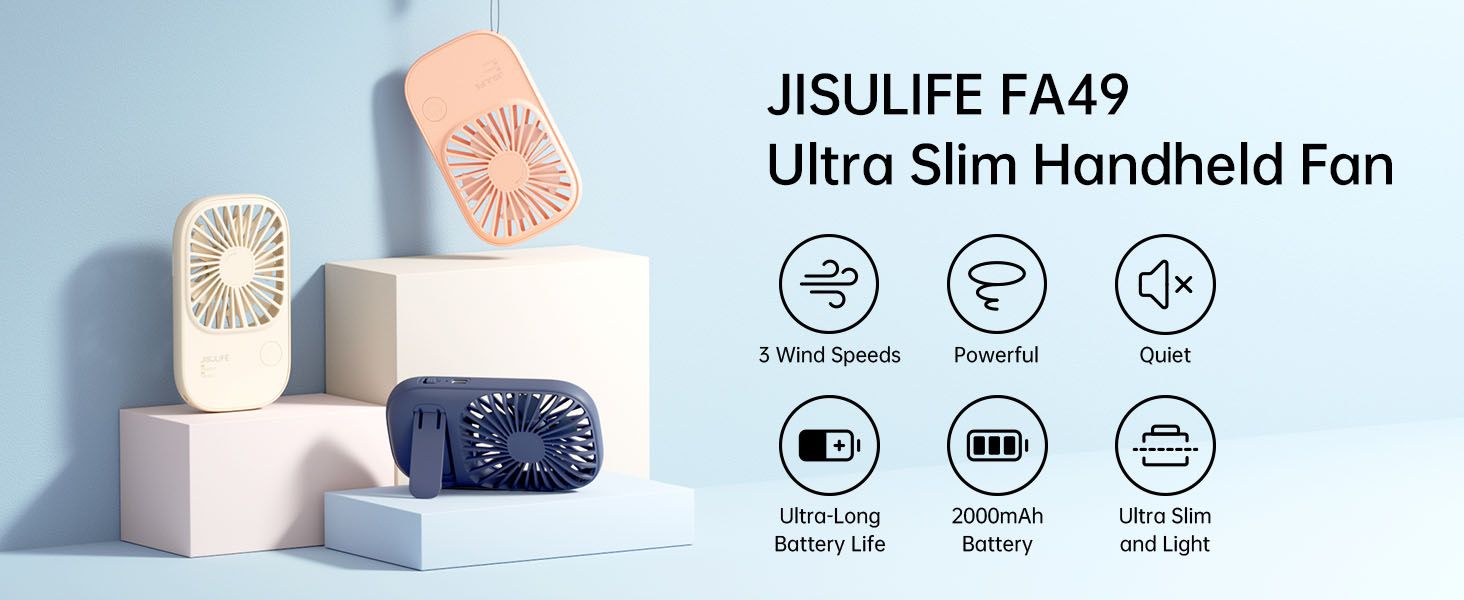 JISULIFE FA49 Rechargeable Super-Thin Handheld Fan 2000mAh