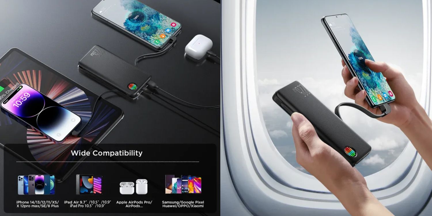 Built-in dual cable lets you easily charge devices without relying constantly on power adapters and cable management. Assuring hassle-free power delivery for accessories during traveling.