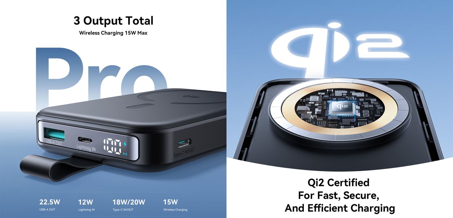 With 22.5W output and a 10,000mAh battery, the JR-PBM11 QI2 delivers quick and efficient charging, allowing multiple device recharges while on the move.