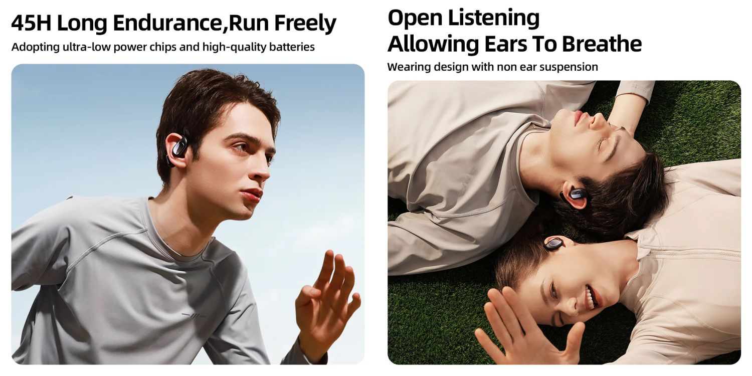 The open-ear structure ensures safe listening with environmental awareness, while the oversized 16.2mm speaker delivers powerful, clear sound without blocking your ears.