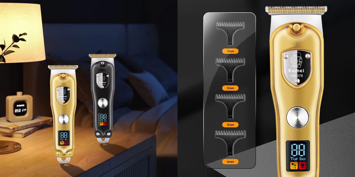 Kemei KM-078 turns home grooming into precision work. Its full metal body feels solid in hand while the 0.1mm ultra-short tooth pitch blades carve crisp lines and tight fades. An all-copper motor supplies steady torque for smooth cutting, and a 2-hour USB charge gives about 100 minutes runtime; great for travel or weekly touch ups. Four limit combs cover 1 to 4 mm lengths and the kit includes brush, oil and USB cable. Pick it up from Apple Gadgets for reliable styling and great value.