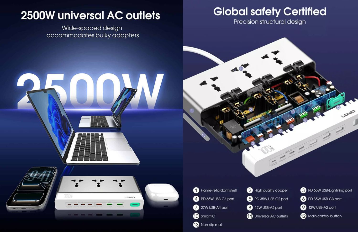LDNIO SC3 100W 10-in-1 GaN Desktop Charging Power Strip