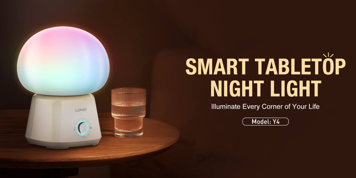 LDNIO Y4 3600mAh Smart Night Light turns any bedside or desk into a dreamy color island. Its stepless capacitive touch blends red, green and blue for endless hues while smooth dimming adjusts brightness from 25 to 100 percent without flicker. A hefty 3600 mAh battery runs long on low and medium modes, plus USB-C recharge keeps it simple. 5 built-in protections guard against faults, and silicone feet stop tumbles from pets or kids. Portable, safe and supremely cozy lighting solution.