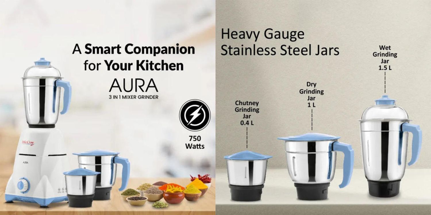 McCoy Aura 3 Jars Mixer Grinder - 750W Key Highlights