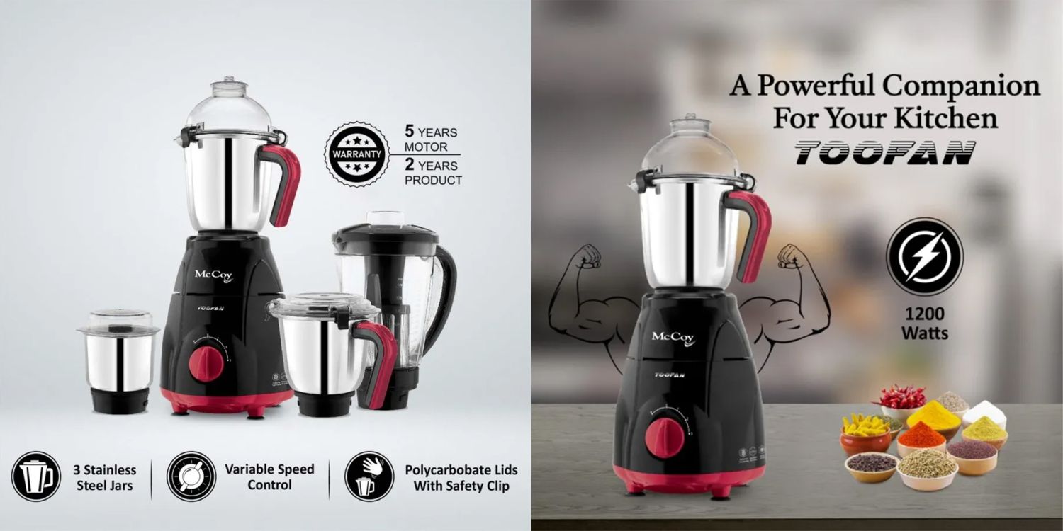 McCoy Toofan 4 Jars Mixer Grinder - 1200W Key Highlights