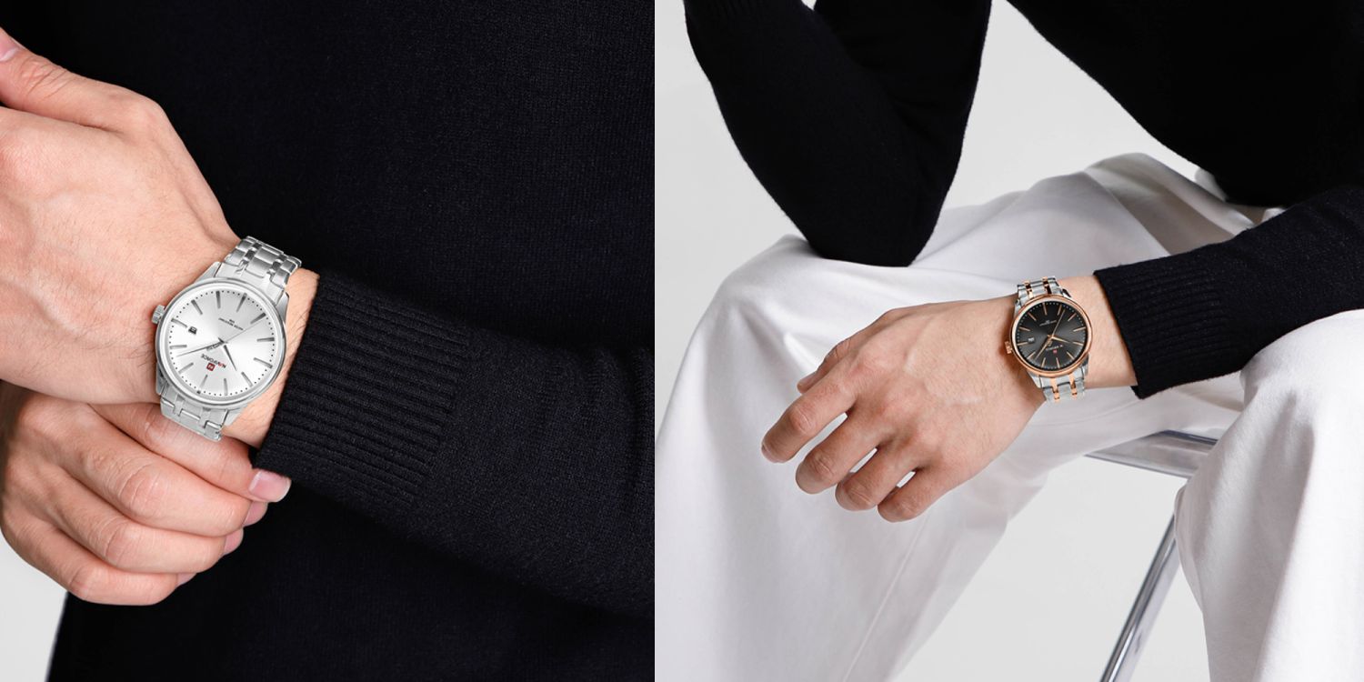 - Water-resistant build and date display add daily convenience and practical function