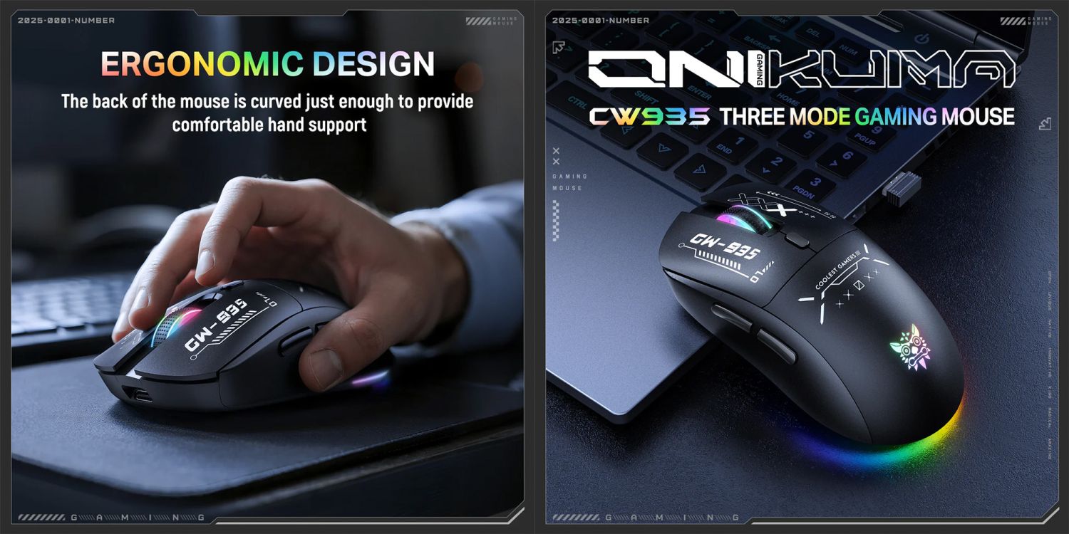 ONIKUMA CW935 Tri-Mode RGB Wireless Gaming Mouse Key Highlights