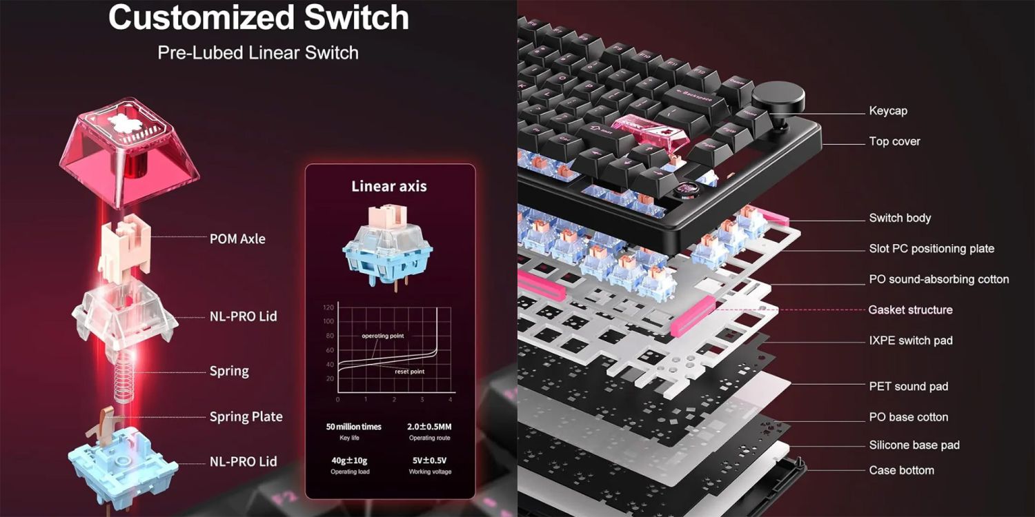 ONIKUMA MT706 Tri-Mode Gasket RGB Gaming Mechanical Keyboard
