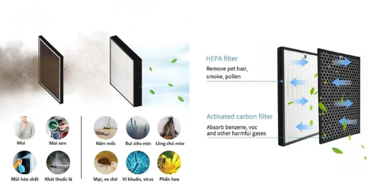 Dual HEPA and Carbon Filter traps dust allergens, smoke, and odors to keep indoor air fresh, clean, and healthy every day for home and office.
