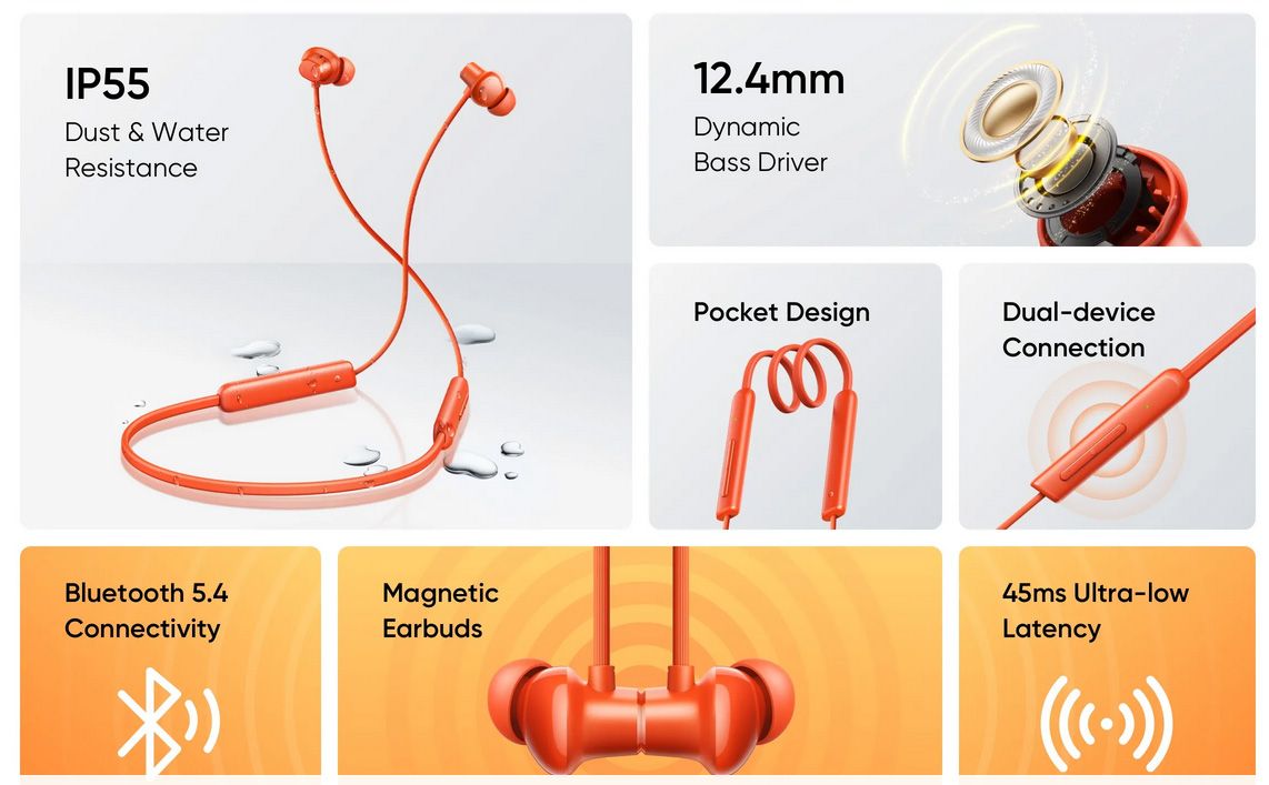 Looking for a neckband that does not slow down your workout? Then look no further as the realme Buds Wireless 5 Lite is here to save the day. With a beefy 12.4mm dynamic bass driver you can enjoy every beat with a good amount of thump. Need lag-free gaming? The ultra-low 45ms latency has your back.