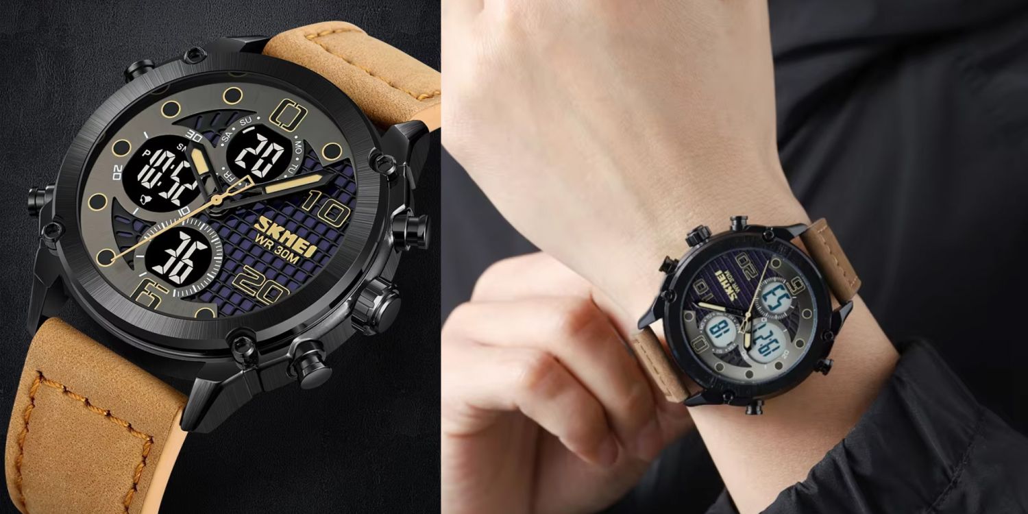 SKMEI 1975 Digital Analog Leather Strap Men’s Watch