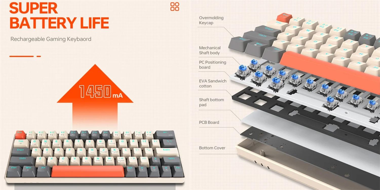 T-Wolf T30 Tri-Mode RGB Wireless Mechanical Keyboard