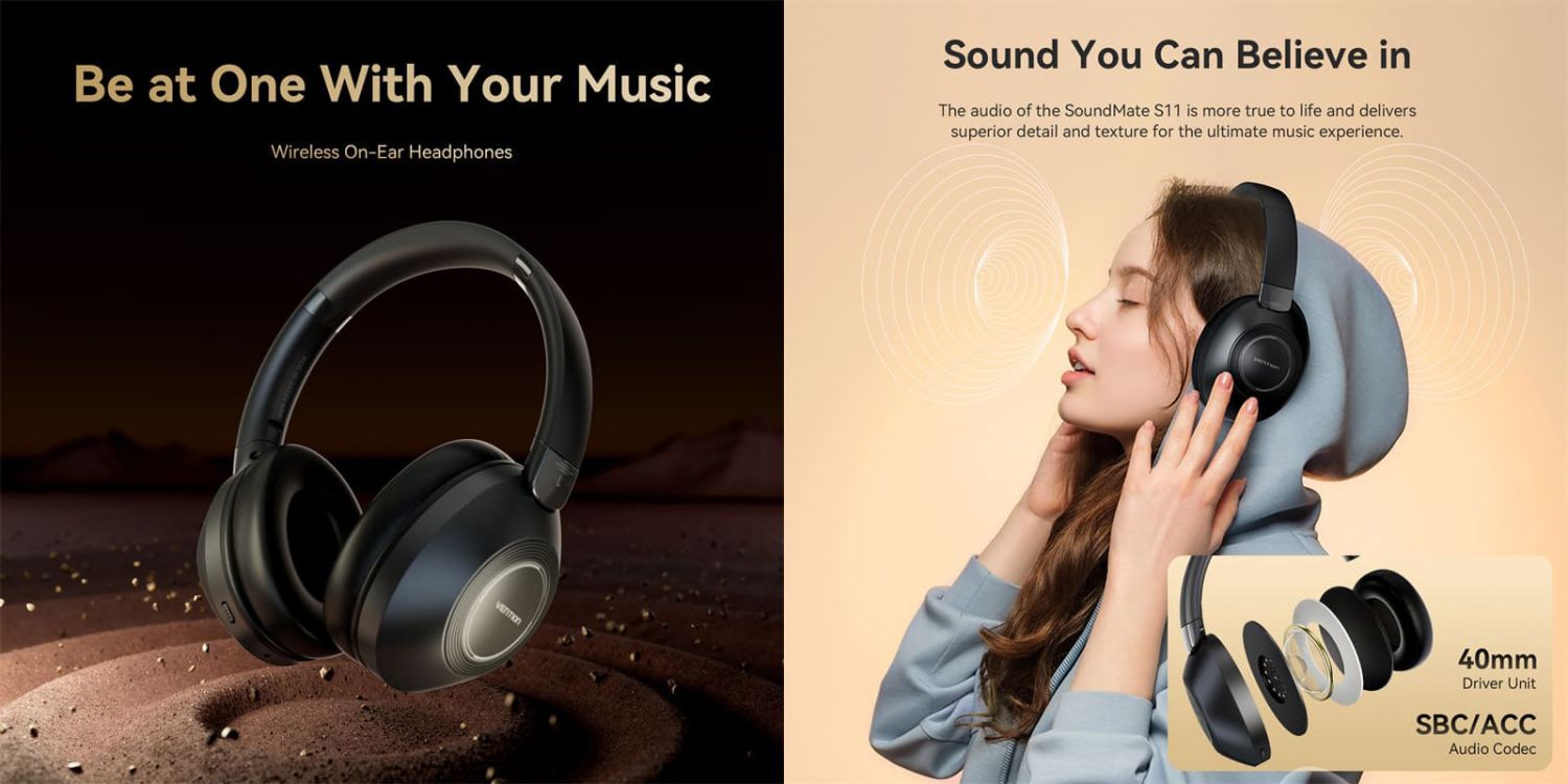 Say hello to the VENTION SoundMate S11, the wireless on-ear headphone that actually gets you. Whether you’re zoning out to lo-fi beats or hopping on a video call, the 40mm drivers deliver bass that thumps, mids that talk back, and highs that sparkle without any lag drama. Thanks to Bluetooth 5.3 and smart codecs like SBC/AAC, your tunes and convos stay crisp, stable, and power-efficient.