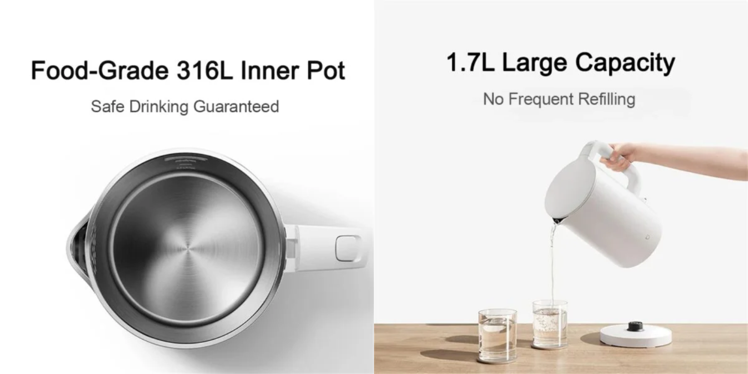Make hot water in a matter of minutes with Xiaomi Mijia Electric Kettle 3. Which comes with a reliable large capacity to ensure multiple cups of tea and glasses of hot water. There’s a powerful heating ring below the kettle which delivers rapid heating for quicker hot water action. And this inner pot is made with one of the best food-grade 316L stainless steel to ensure better corrosion and high-temperature stability.