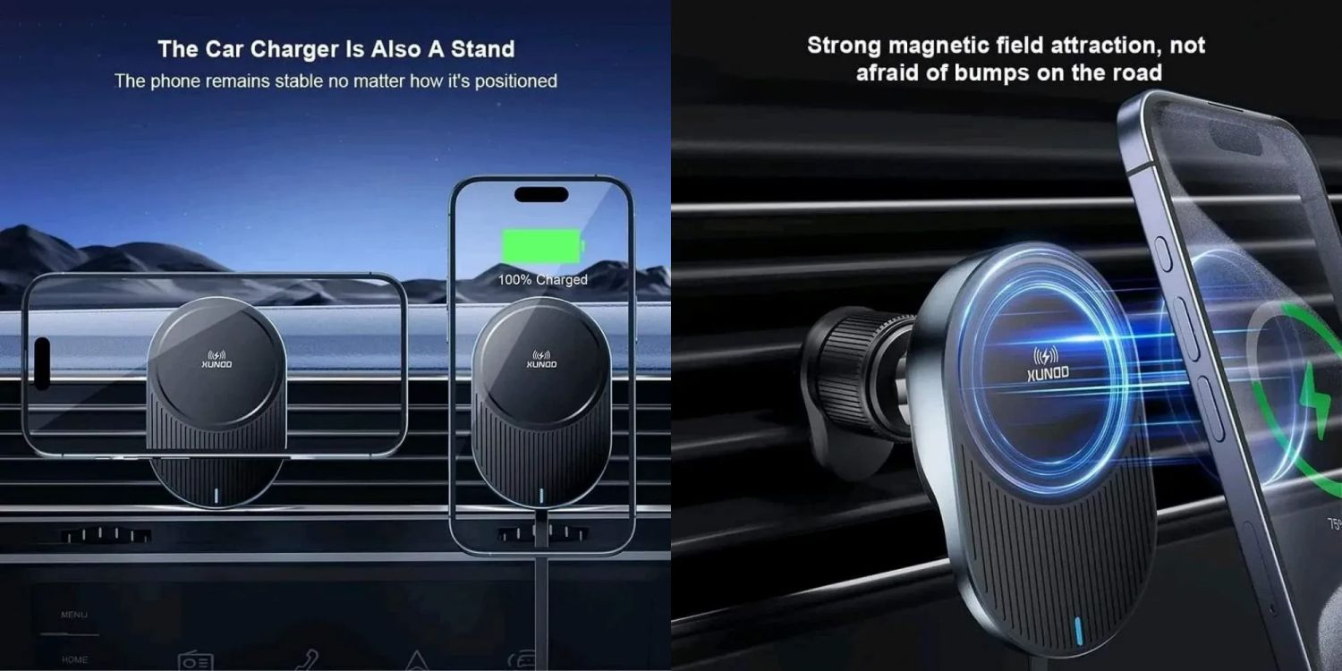 Turn every drive into a smooth charging moment. The XUNDD XDCH-076 Wireless Car Charger is built with a strong magnetic attraction that keeps your phone steady even on rough roads. Enjoy fast wireless charging from 5W to 15W while driving without worry. The adjustable 360° design lets you set the perfect viewing angle for maps and calls. Made from ABS and PC fireproof materials, it is durable and long-lasting. With an 80cm Type C cable and secure mount, it makes every trip easier and safer.